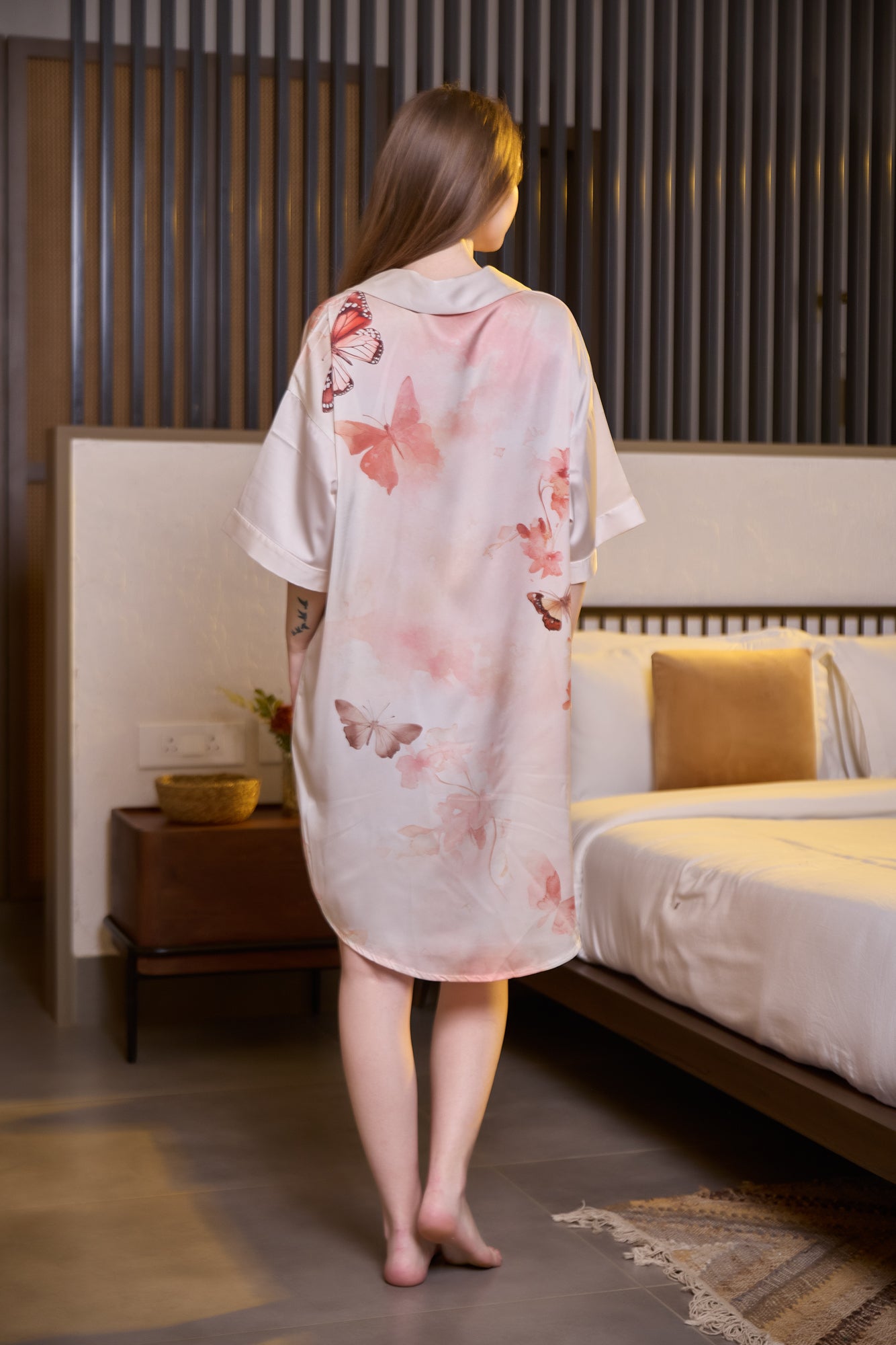 Butterfly Print Satin Nightshirt