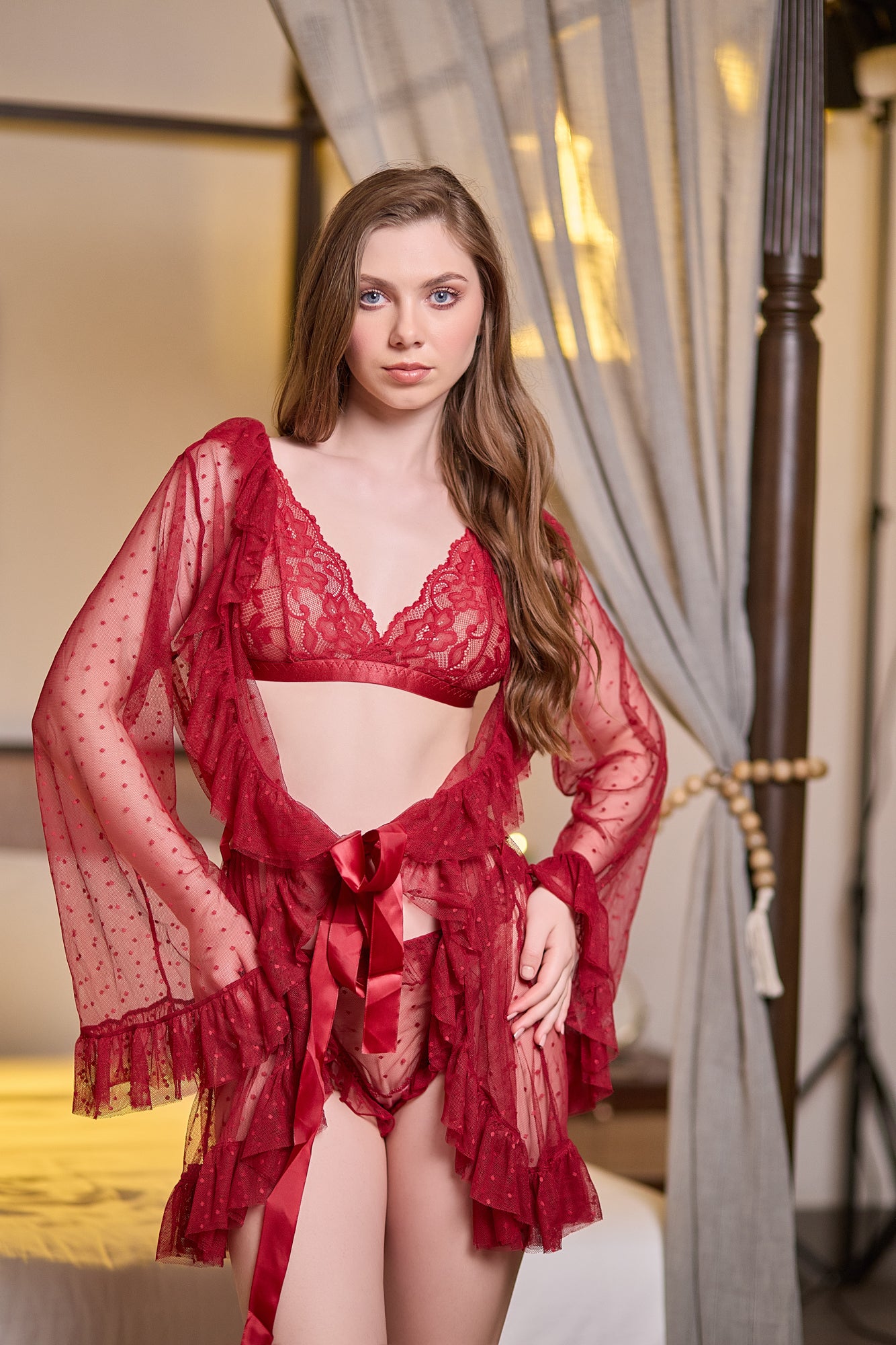 Seductive Scarlet 3-Piece Sheer Lingerie Set
